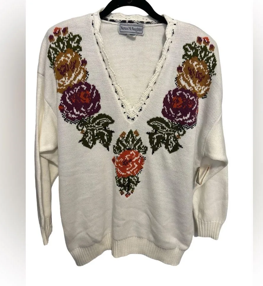 Norton mcnaughton vintage white floral embroidered sweater size large nwt - $25 - From Cynthia