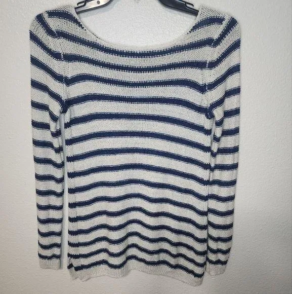 linen blue and off white Stripe knit linen sweater. size xs. in great condition