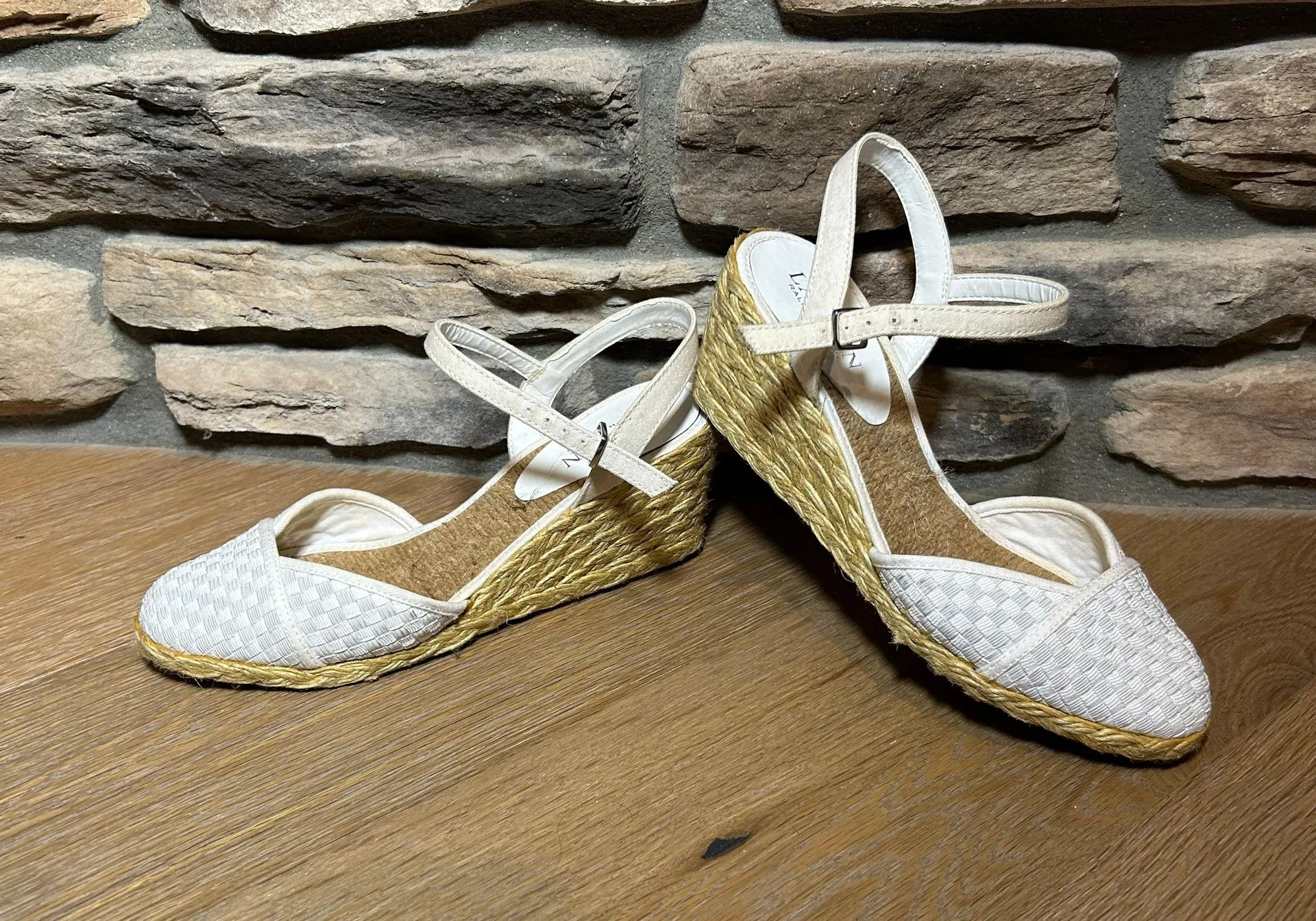 1 pair of shoes. Lauren Ralph Lauren women’s size 7 summer wedge shoes. Could fit size 7.5 wedge... Show more