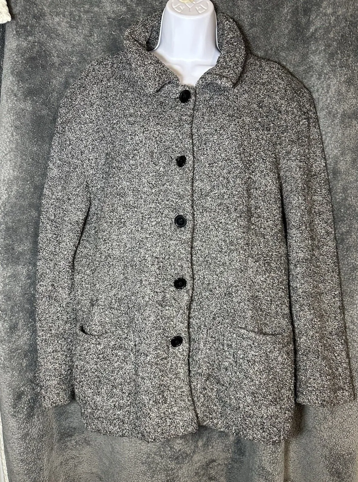 Dressbarn Gray Blazer Jacket, featuring a classic button-down front and a mock neck for a sophistica... Show more