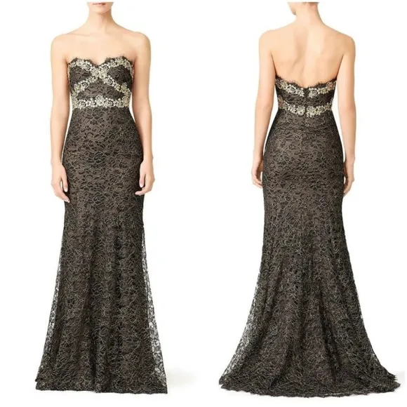 marchesa notte Gilded Gold Strapless Gown maxi dress size 4 CL Black - $73 (91% Off Retail) - From Liza