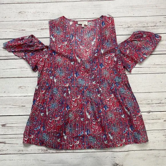 LUCKY BRAND Women's Baby Doll Top * Pink Printed * Cold Shoulder * Small * 24.5" shoulder to hem... Show more