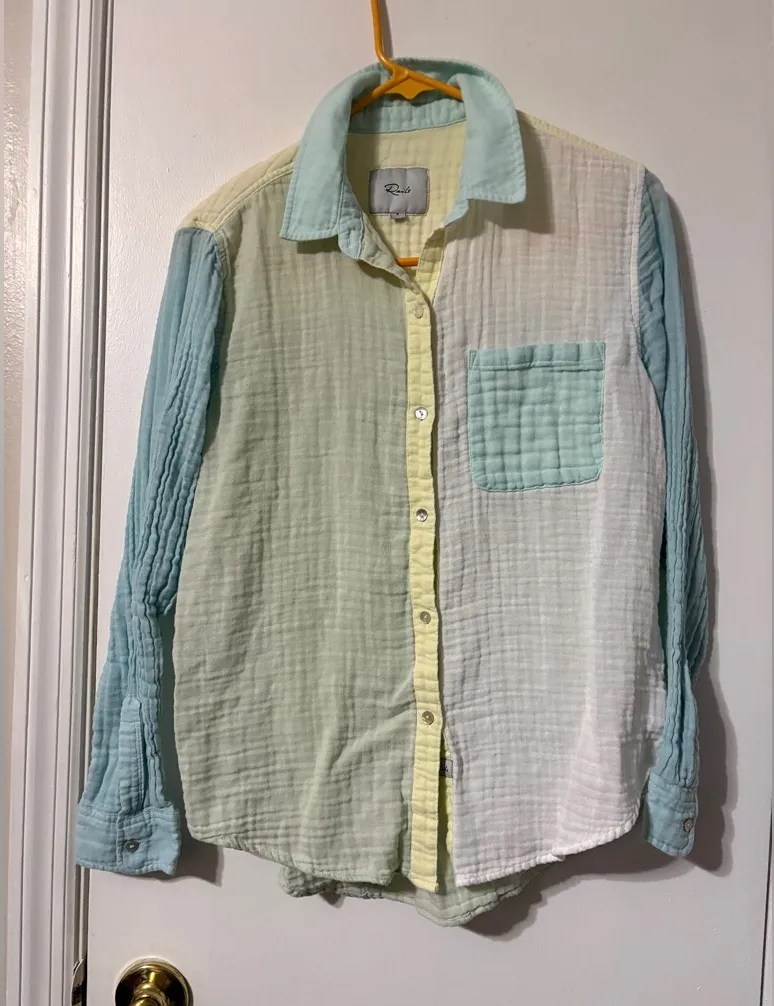 Rails Ellis Shirt Mint Color Block long sleeve button down Small White - $45 - From Adriana