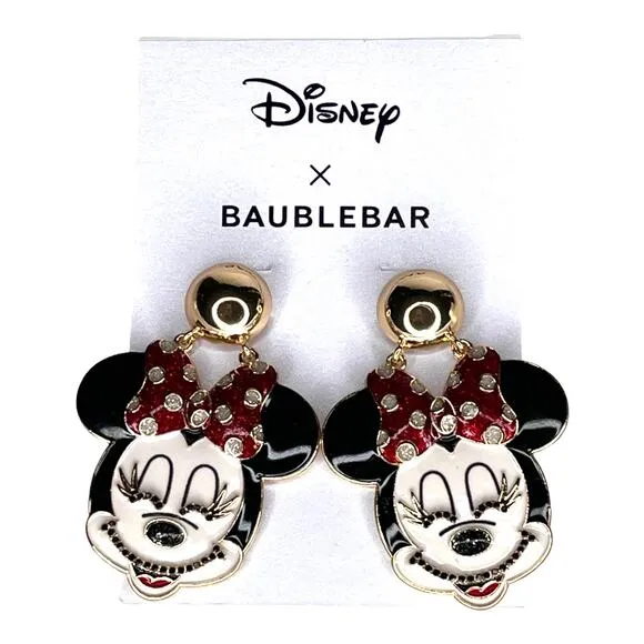 NEW Disney x BaubleBar MINNIE MOUSE EARRINGS 2-3/8" Dangle Drop Mickey Mouse's Girl Black Onyx Cryst... Show more