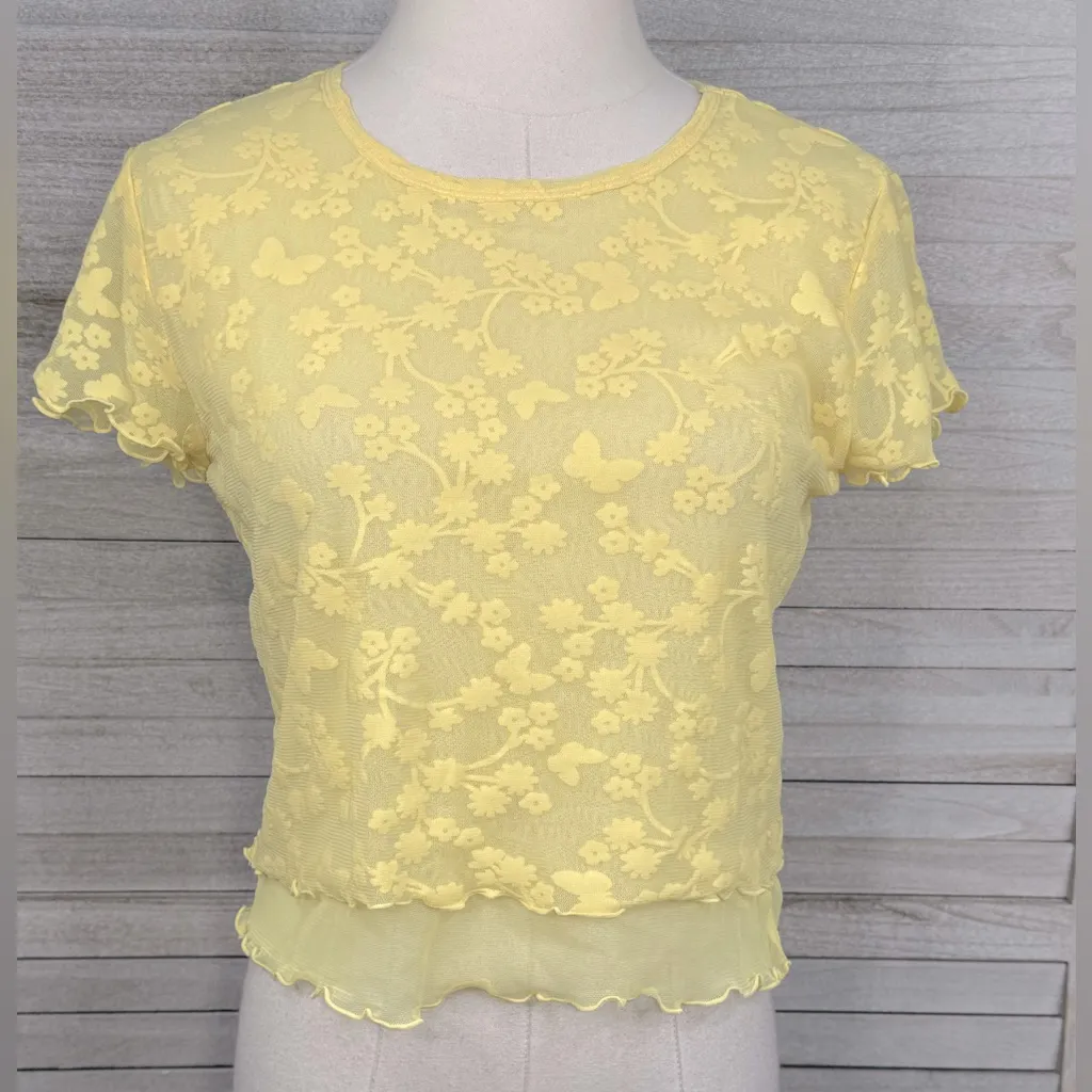 NWOT Sheer, layered cropped tee in a pretty floral/butterfly pattern. -Pullover -Cropped length -D... Show more