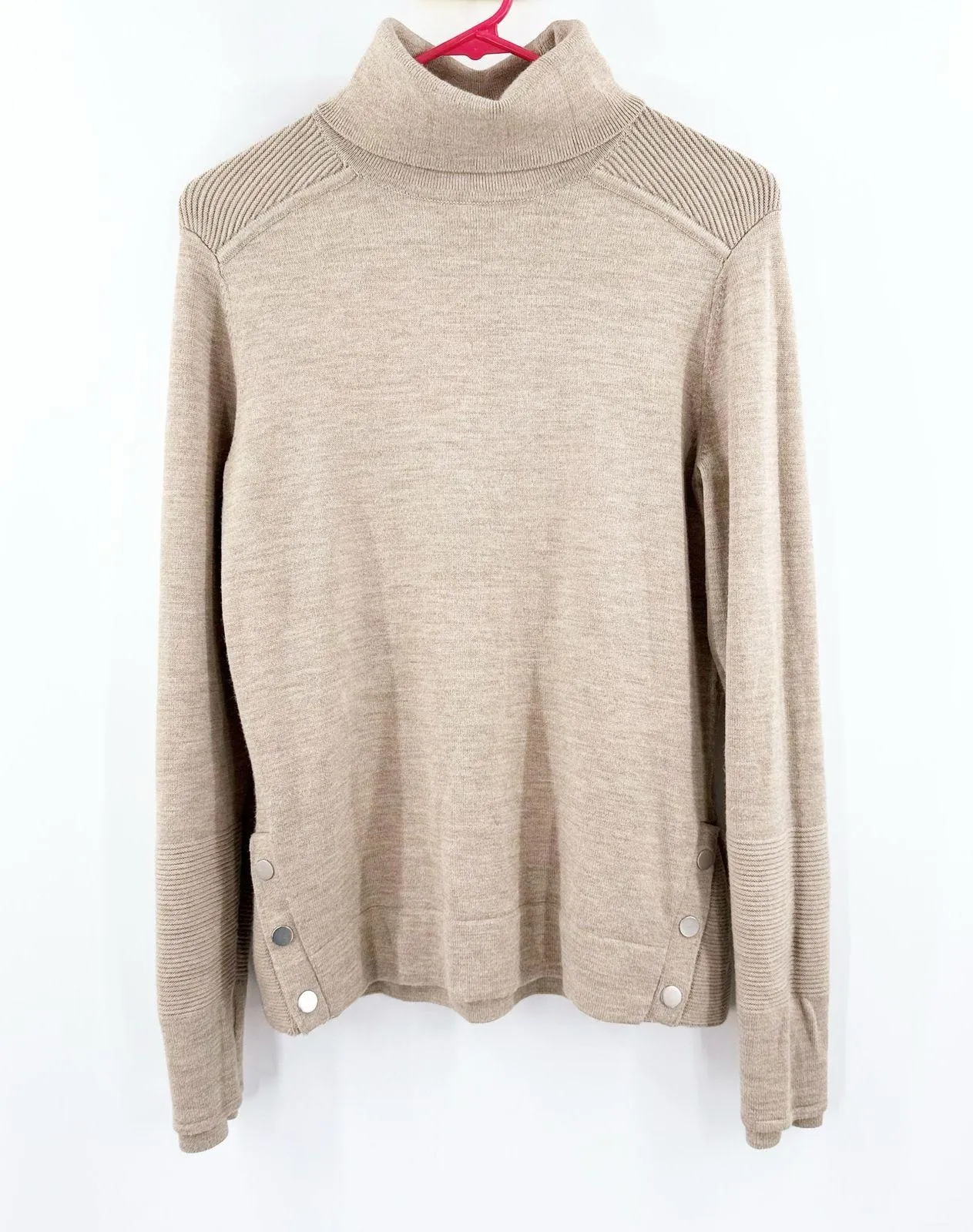 Athleta Sweater Size Small Merino Wool Blend Turtleneck Snaps Oatmeal #159163 Size: small Approxim... Show more