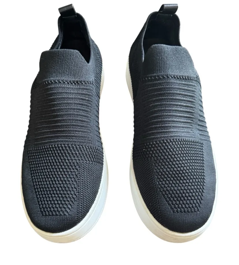 Brand-Steve Madden Size-9 Color-Black with White soles Condition-Preowned in excellent condition Material-Manmade upper; manmade lining; rubber sole Step into comfort with these sleek black slip-on women’s shoes. Perfect for any casual outing. Take casual style to the next step with a comfy knit texture and crisp white platform in Steve Madden's Beale slip-on sneakers. Closet Staple, Monochrome, Minimalist, Athletic, Goth, Streetwear, Trendy.