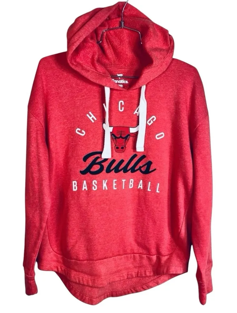 Chicago Bulls Basketball Hoodie Fanatics Red Color Fleece Lined size womens medium ptp 21” total len... Show more