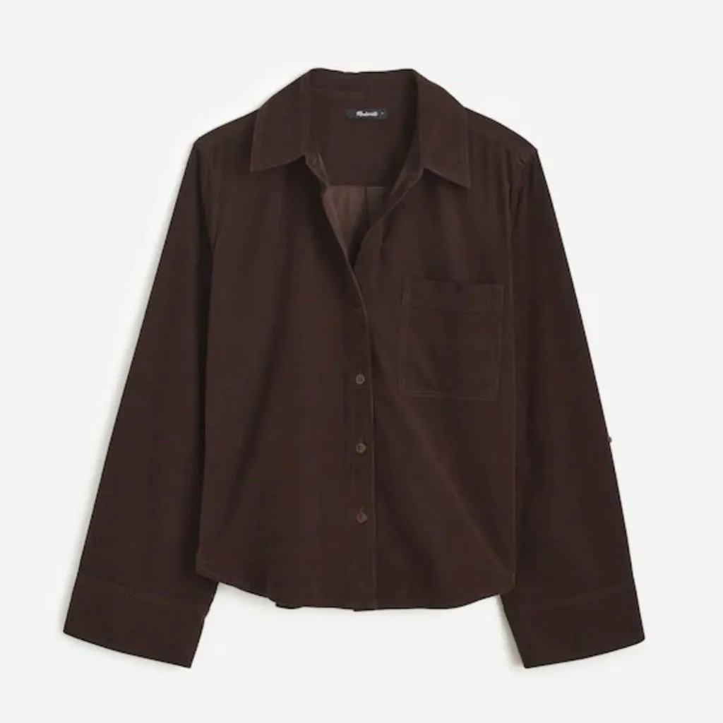 Madewell Dark Chocolate Easy Y-Neck Corduroy Button-Up Shirt Size: Extra Small Color: Dark Carob (... Show more