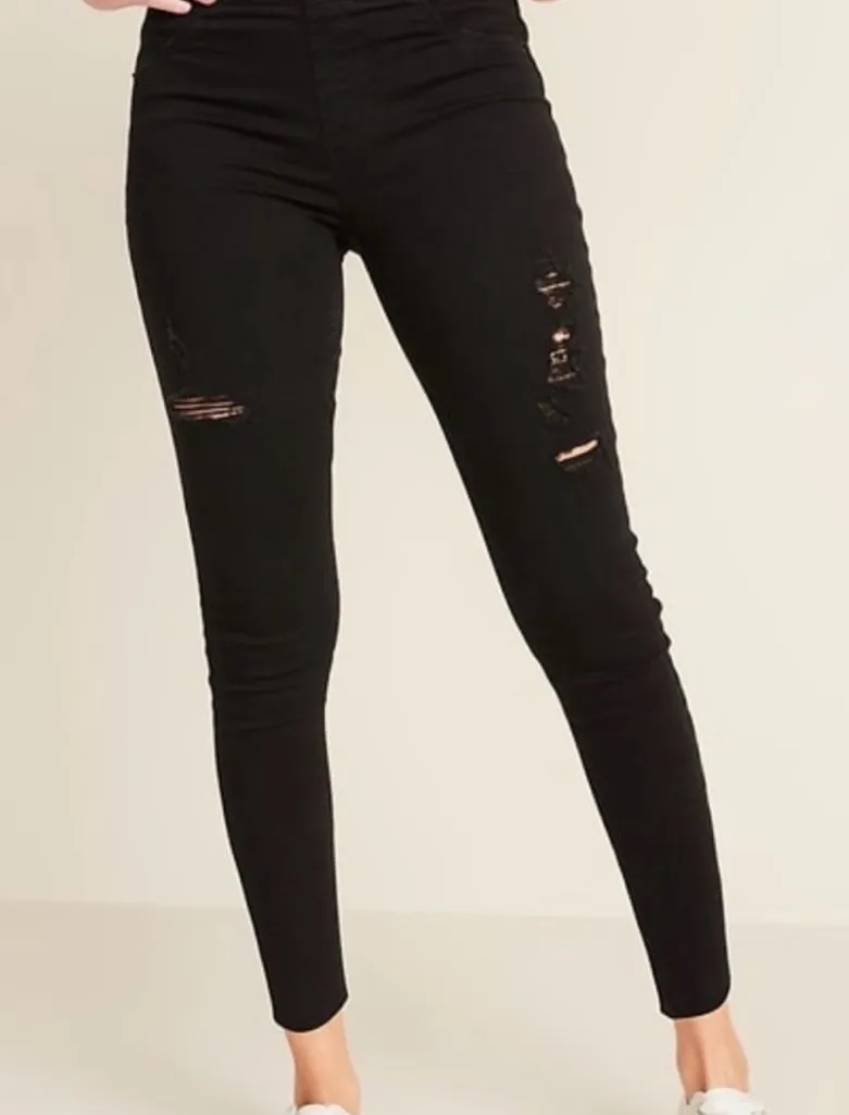 Old Navy EUC Rockstar Mid-Rise Distressed Pull-On Ankle Jeggings Black Size 10 - $20 - From Megan