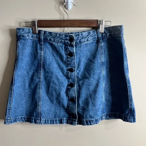 Forever 21 Button front Mini denim jeans skirt Size 31 100% cotton 32”- waist 19”- hip area flat... Show more