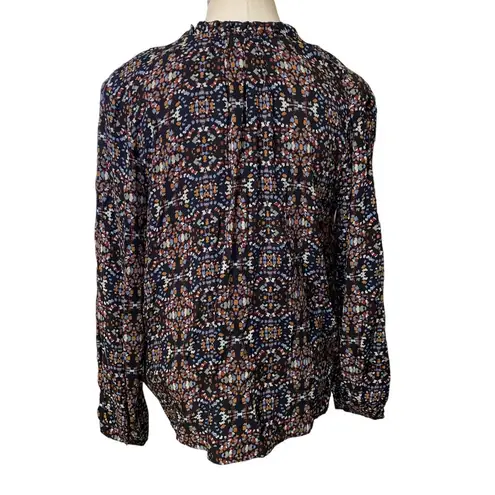 Knox Rose Long Sleeve Peasant Top Size Medium Black with colorful speckled geometric pattern Elasti... Show more