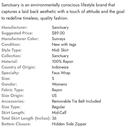 Sanctuary Jamie faux wrap rayon high low midi skirt. Vibrant yellow floral pattern.side zipper. Size... Show more
