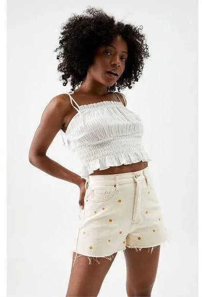 PacSun Daisy Embroidered Ultra High Waisted Vintage Denim Shorts Sz 26 Great preowned condition... Show more