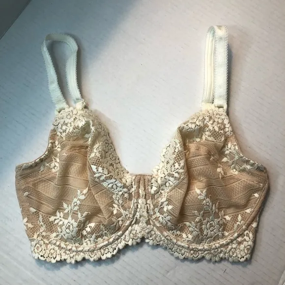 Wacoal Bra Embrace Lace Underwire Bra in Sand/Ivory Sz 32DDD (32F) EUC Style 65191 The unlined seame... Show more