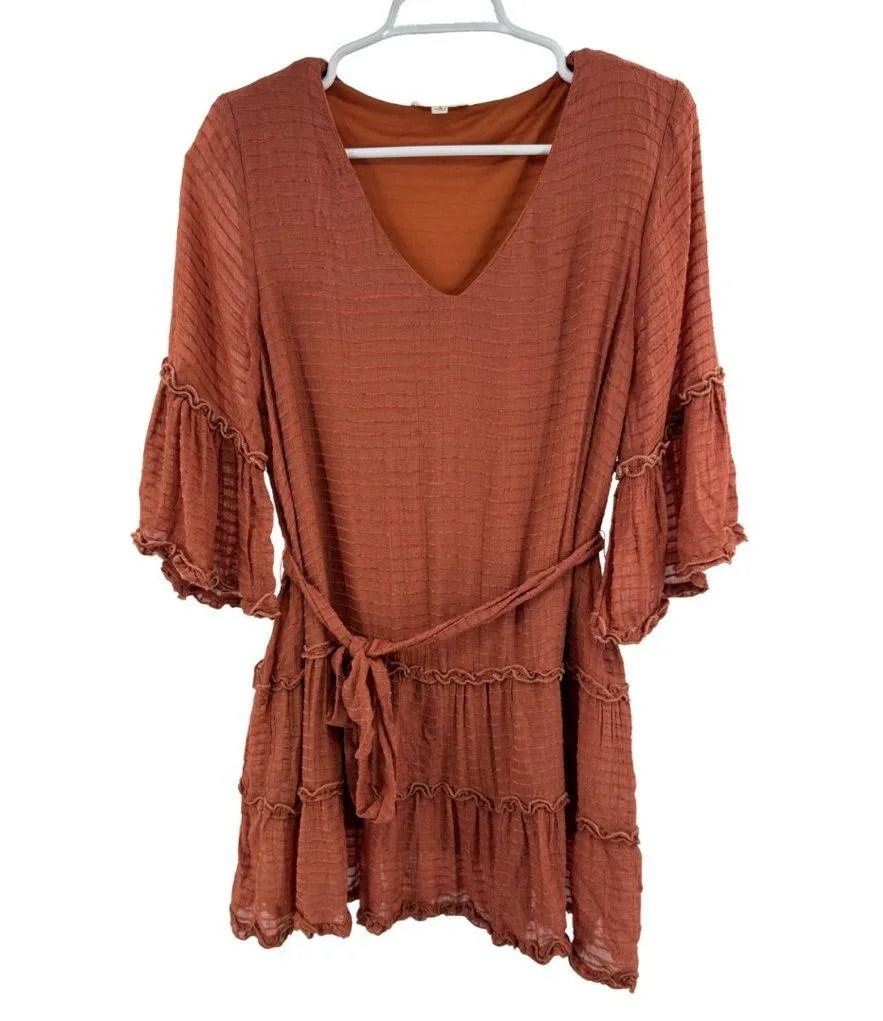 Excellent condition Chic terracotta dress with stylish V-neck. Ideal for versatile wear. Boho. T... Show more