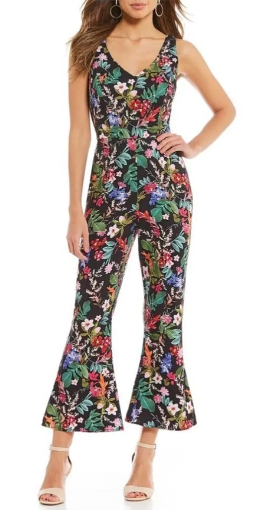 Gianni Bini Sophia Floral Print Cropped Flared Jumpsuit Size: Womens 0 Condition: Pre-Owned Good... Show more