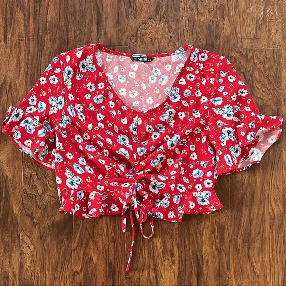 SHEIN floral cropped shirt Red Size M - $11 - From Nathalie