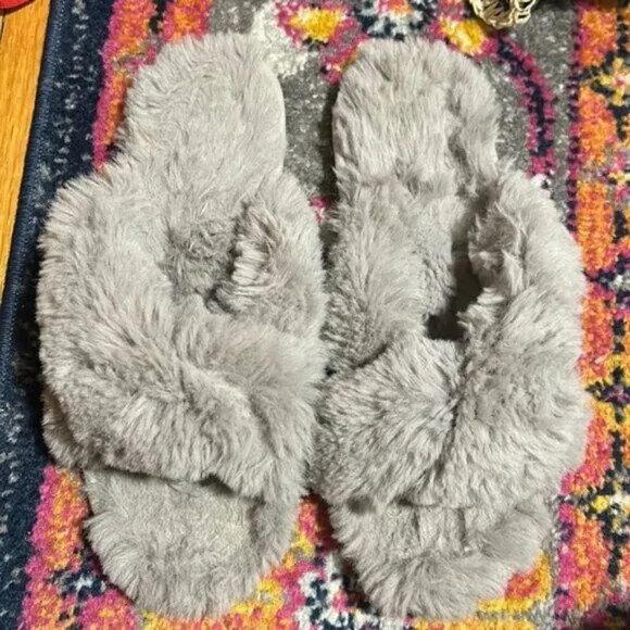 Large 9-11 sizes Slipper furry fuzzy sandals Grey Purchased from loft