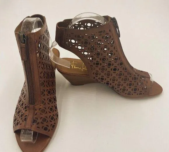 Franco Sarto Brown Laser Cut Leather Open Toe Wedge Booties Womens Size 6.5M - $30 (74% Off Retail) - From Elizabeth