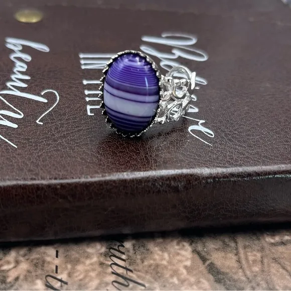 Handcrafted purple white striped glass cabochon silver stainless steel ring Striped ring Colors purple, white, silver Bohemian Boho Colorful Oval 18x13mm Statement Cocktail Lace filigree band Adjustable Open band Looking at more than one item? I offered generous bundle discount on two or more items. Choose from a large selection of handmade and vintage jewelry, accessories, clothing, and make yourself a unique, trendy, and one-of-a-kind outfit.