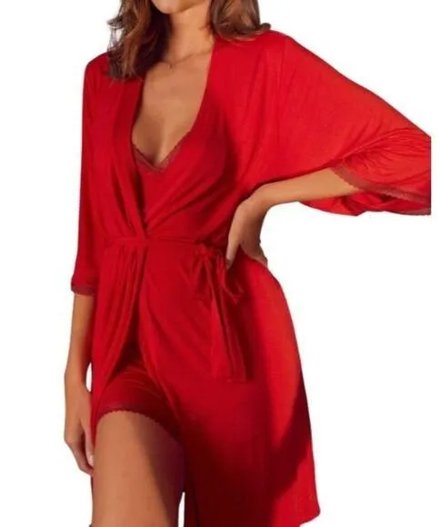 -Smoking Red Hot -Soft Silky Feel -Lace Accents -Tie Belt -Pockets -Modal/Elastane -XS/S -NWT