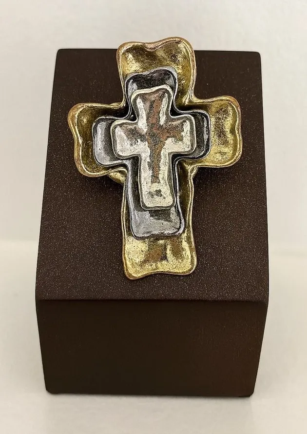 Womens Y2K Vintage Chunky Cross Gold Silver Tone Stretchy Cross Ring Western Great Preowned Condition!! Bundle and Save!! South Western Y2K 2000s Chunky Large Statement Rodeo Cowgirl Faith Religious Edgy