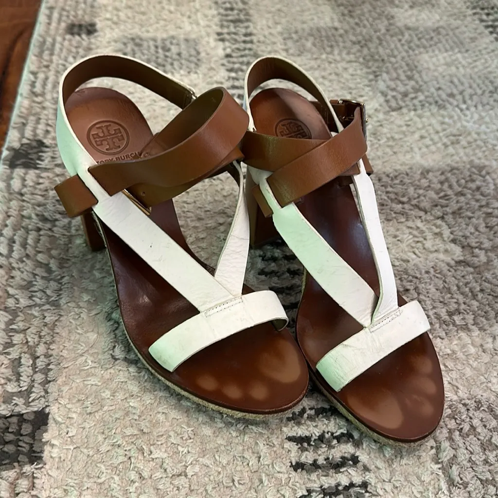 Classic vibes with a splash of fun - Tory Burch Marbella Leather Sandal Royal Tan/Ivory Two-tone lea... Show more