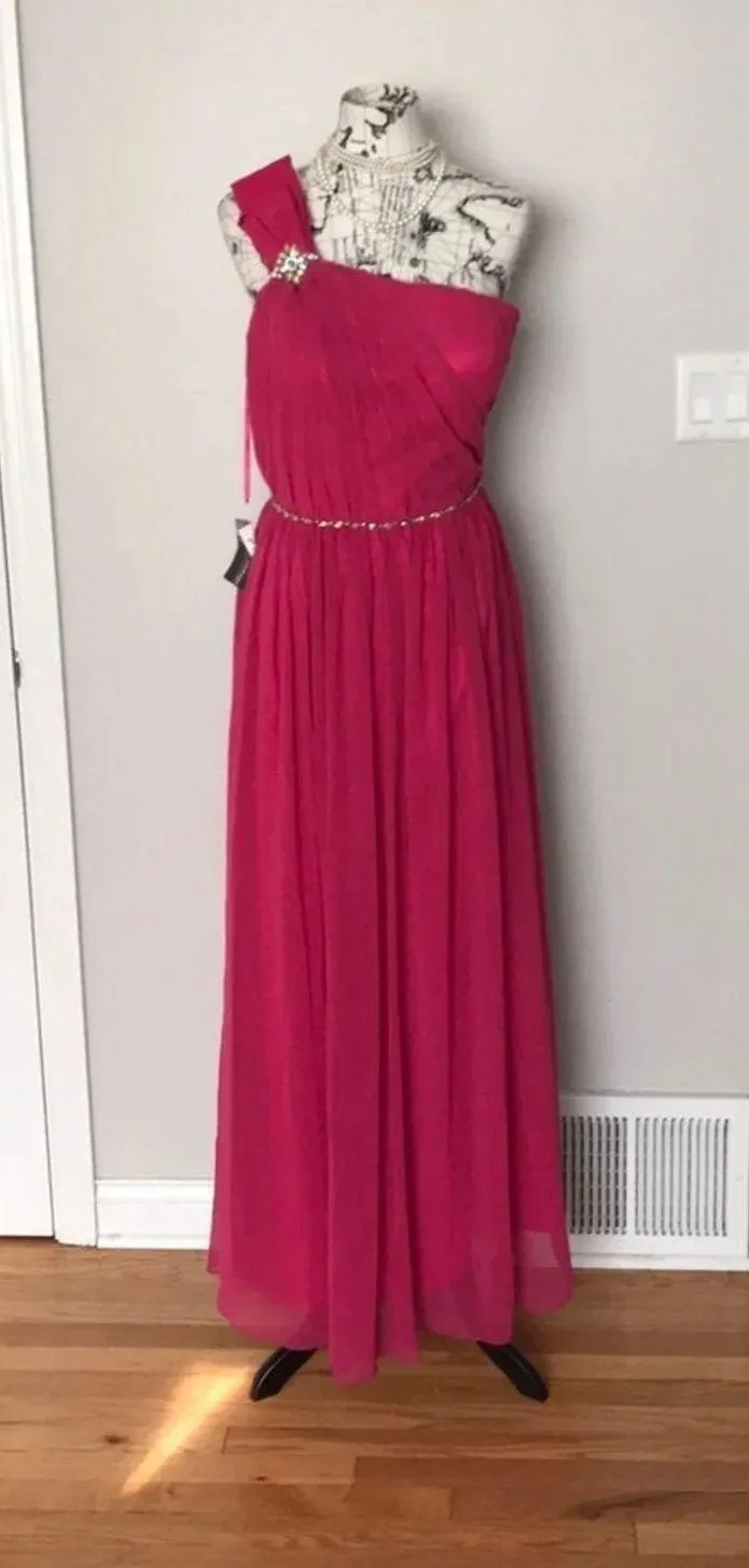 One Shoulder Asymmetric Formal Evening Prom Gown Chiffon Overlay Embellished Bright Fuchsia Hot Pink Colorful Chiffon Coastal Coquette Size XL - $139 (44% Off Retail) New With Tags - From Fuquoa