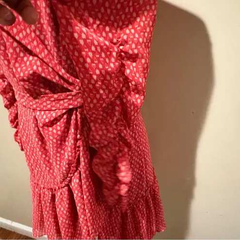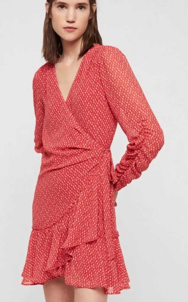 All Saints heart Patterned ruffle wrap mini Long Sleeve chiffon Dress S Red - $24 - From Lucelia