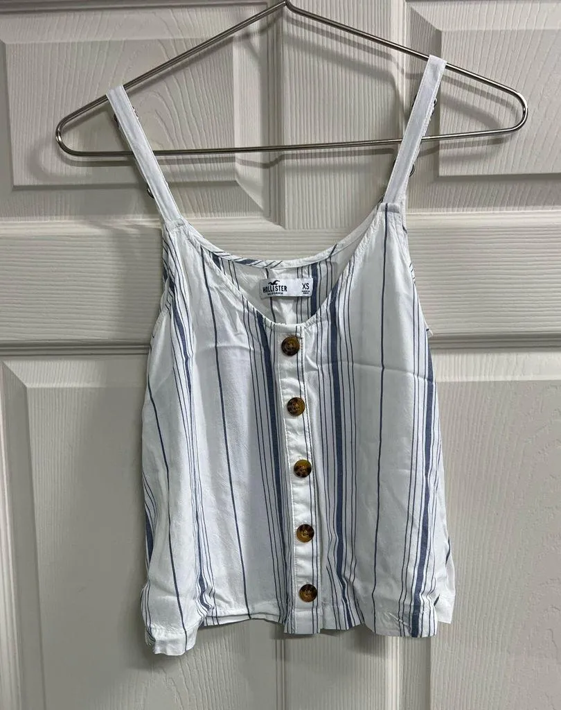 Hollister Women’s White and Blue Striped Sleeveless Tank Top - Size XS - EUC - $10 - From Renee