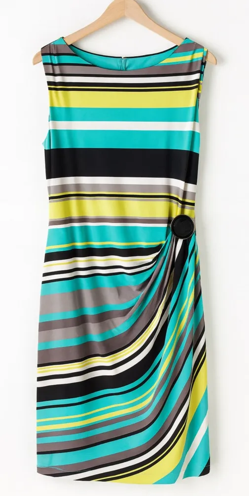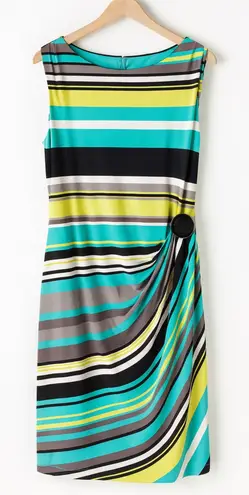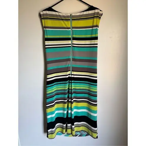 Vintage Y2K Tahari Women's ASL Green Striped Draped Boat Neck Dress sz 14 Preppy Same or Next Day Shipping! Turn heads in this vibrant sleeveless sheath dress, designed with bold multicolor stripes in teal, lime, black, gray, and white, featuring a flattering draped detail at the waist accented by a chic black buckle, perfect for work, social events, or a polished everyday look. Great Preowned Condition!! Pit to pit 21" Length shoulder to end 40" Bundle and Save!! 1483 90's Retro Colorful Career Fun elegant modern stylish trendy feminine chic classy fashionable vibrant bold unique versatile timeless flattering comfortable lightweight soft breathable stretchy colorful eye-catching sophisticated sleek polished contemporary office party casual summer spring wardrobe statement midi cocktail resort boutique designer 2000’s