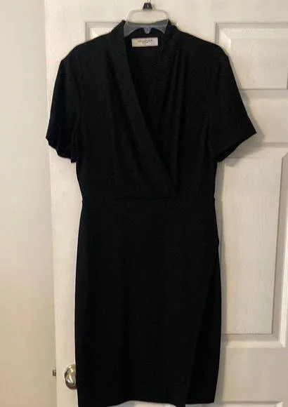 bust 36”zipper on leg side see all photos The MM Lafleur Black Sheath Midi Dress is a sophisticated choice for cocktail and work occasions. Crafted in a classic black hue, this dress features a flattering V-neckline and short sleeves, offering a sleek and polished look. Its sheath style ensures a tailored fit, making it a versatile addition to any wardrobe.(S5)