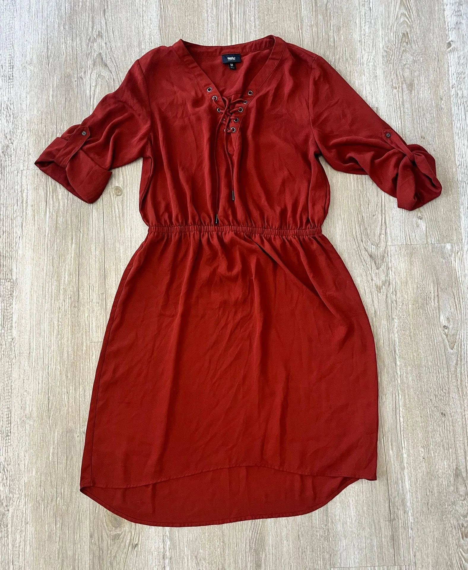 Womens size medium Mossimo Orange 3/4 length sleeve midi dress Button up sleeve detail Elastic wais... Show more