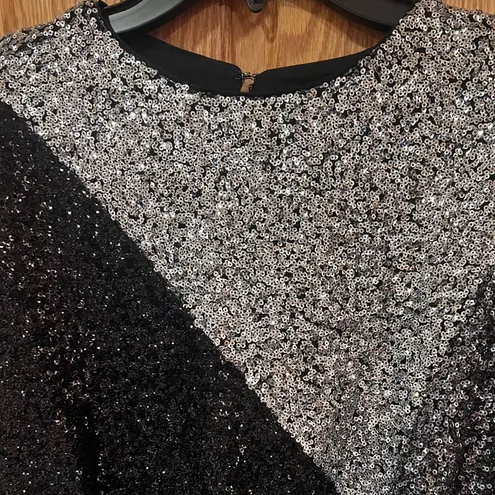 I’m selling an Express Color Block Sequin Strong Shoulder Long Sleeve Mini Dress Size XS for $60. N... Show more