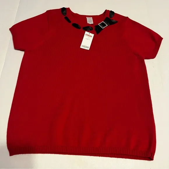 Gymboree women’s size large Color: red short sleeve sweater NWT new with tags black ribbon collar with bling buckle Please see all pictures for condition and measurements of this sweater. Christmas sweater Holiday sweater