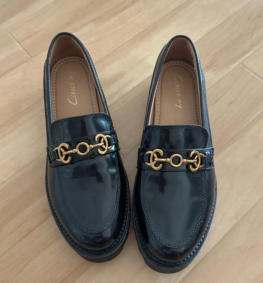 Black Patent Leather Loafers with Gold Chain Size 8 - $30 - From Gianna