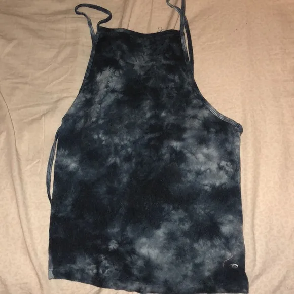 super cute and soft!! a very dark navy tie dyed color. ties around neck!
