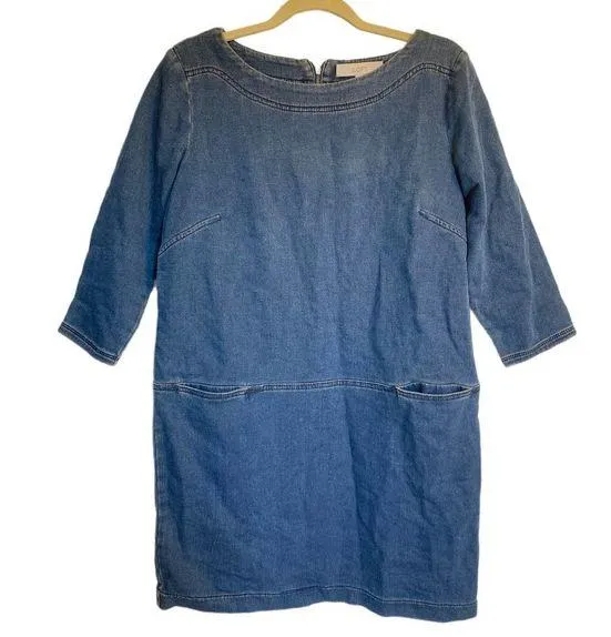 Ann Taylor LOFT Blue Jean Like 3/4 Sleeve High Neck Mini Dress EUC Size Small