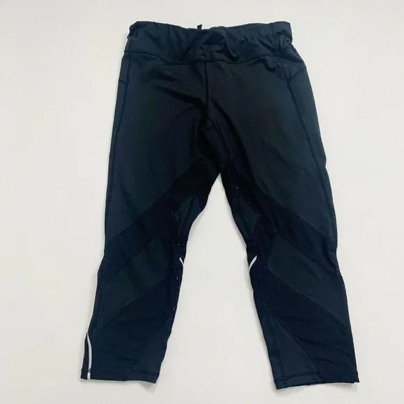 Zella Black Athletic Leggings Cropped Pant Drawstring Waist Size Medium Mesh panel inserts throughou... Show more