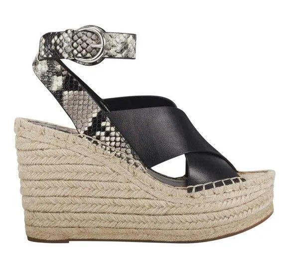 Step out in style with these stunning Marc Fisher Abacia 2 espadrille wedge sandals. The black snake... Show more
