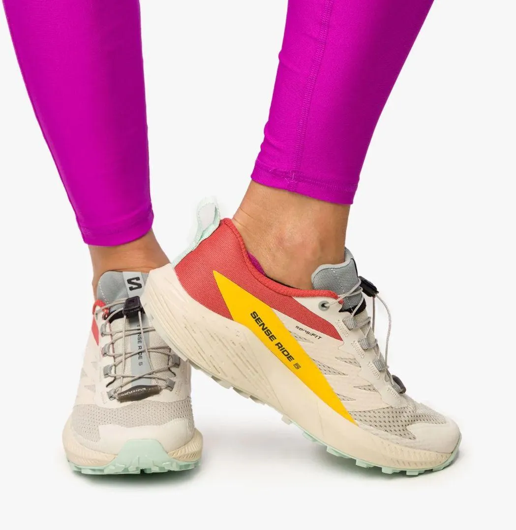 New without the box A versatile trail shoe that does it all, the SENSE RIDE 5 is equally in its element on short, fast trail runs as on ultra distances. A super comfortable overachiever that easily adapts to a variety of terrains, with a balanced midsole for cushioning, response and an engineered mesh upper with Sensifitâ„¢ for just the right amount of comfortable hold. Heel-Toe Offset: 8 mm Weight: 8.9 oz OPTIONS: Rainy Day/Hot Sauce/Freesia