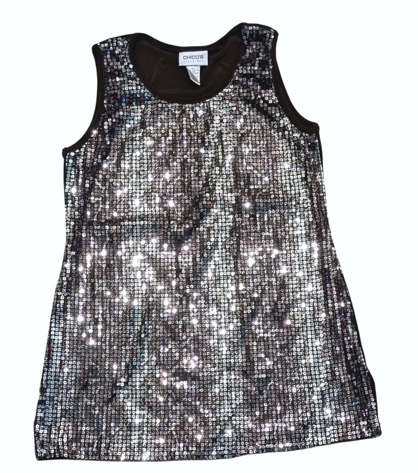 Excellent pre-worn condition!! Chico's Travelers size 1 Brown sequined tank top, so comfy and cute!... Show more