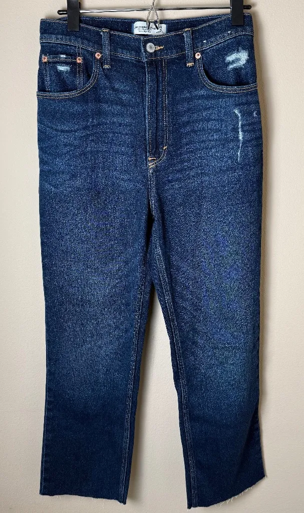 Abercrombie & Fitch women’s The 90s Straight Ultra High Rise jeans. Size 28/6R. Dark wash, raw hem... Show more