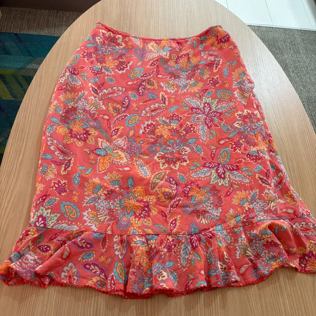 Sigrid Olsen Sport Large Pink Floral Midi Length Ruffle Hem Rayon Side Zip Lined - $15 - From Mary