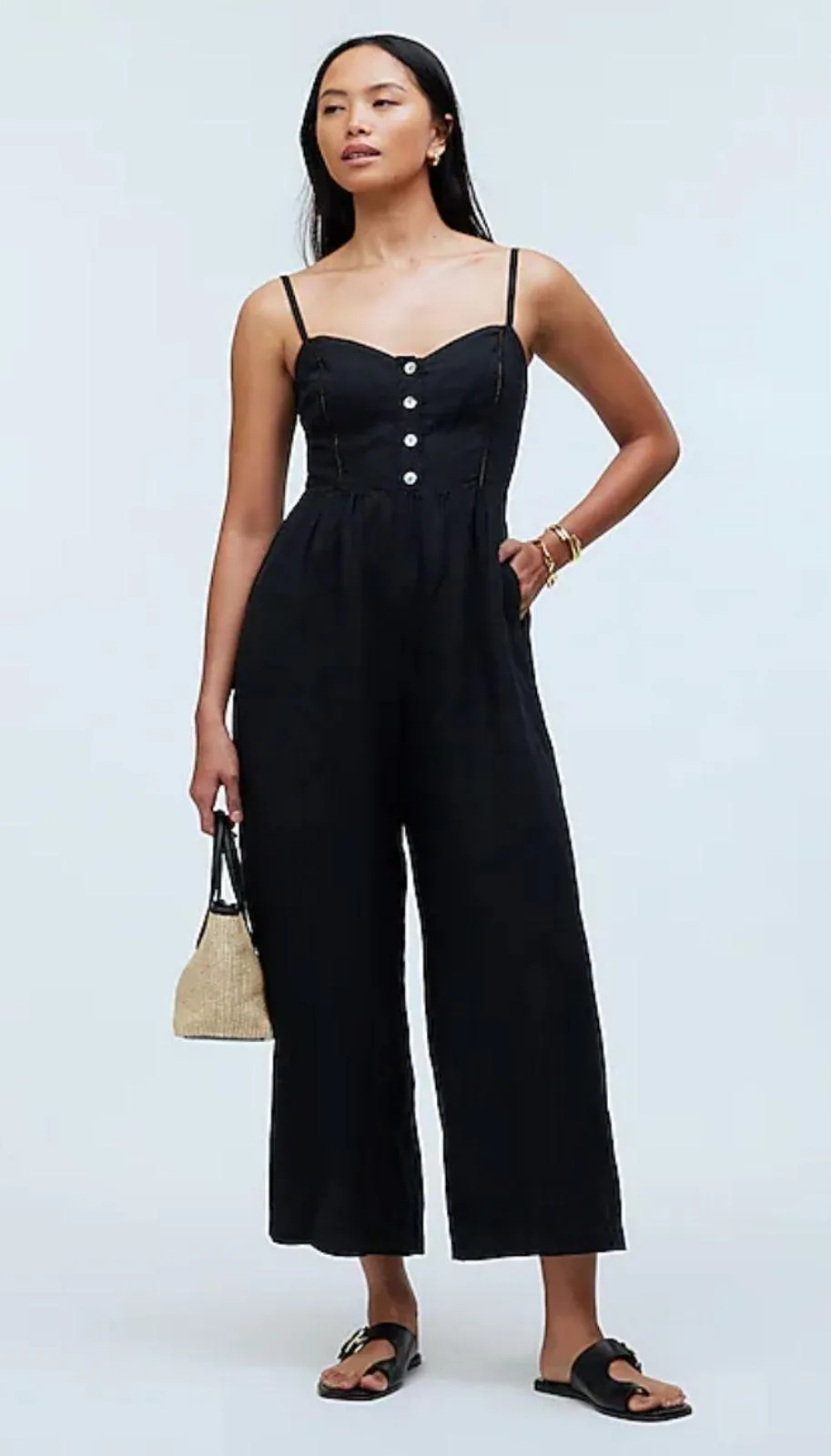 . New with tags. "Made of our lightweight 100 percent linen, this pull-on jumpsuit has a button-... Show more