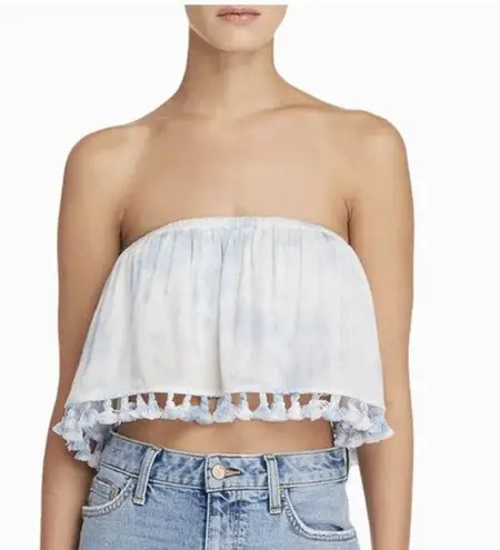 Aqua Tie Dye Pom Pom Tassle Strapless Blue White Marble Sky Crop Top Size Small NWT Poolside Tide B... Show more