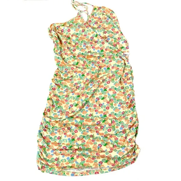 Princess Polly Bodycon ruched dress Faux wrap neckline Strappy Retro floral pattern Size 8 100% cot... Show more