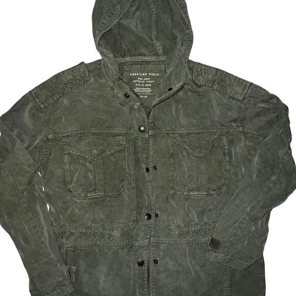 American Eagle Womens Military Cargo Hooded Jacket Tie Waist Green Size medium - $28 (68% Off Retail) - From Haylie
