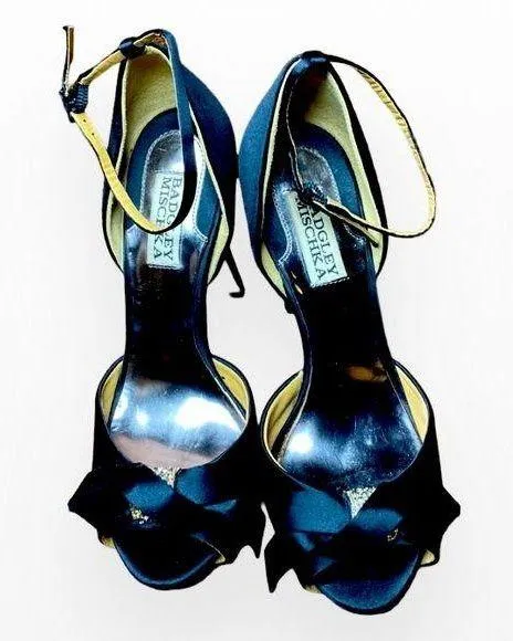 Badgley Mischka Size 7M Black Satin Designer Very Glam With Rhinestone Accents - $85 - From Leonila